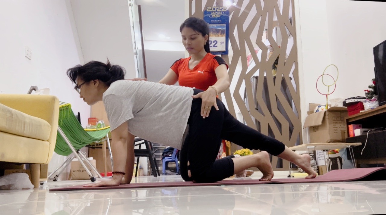 Hình ảnh tập luyện yoga cá nhân 1 kèm 1 tại nhà: