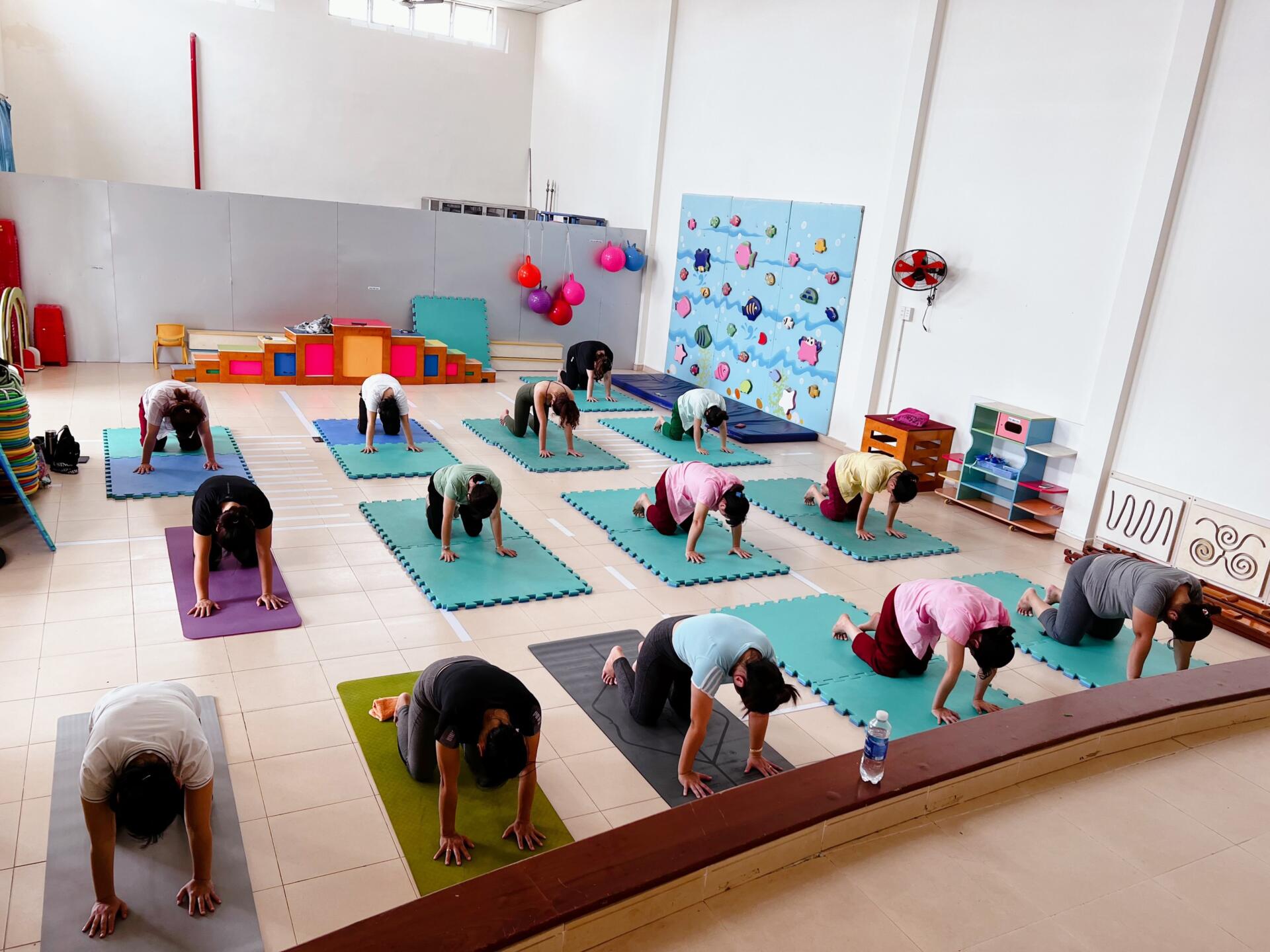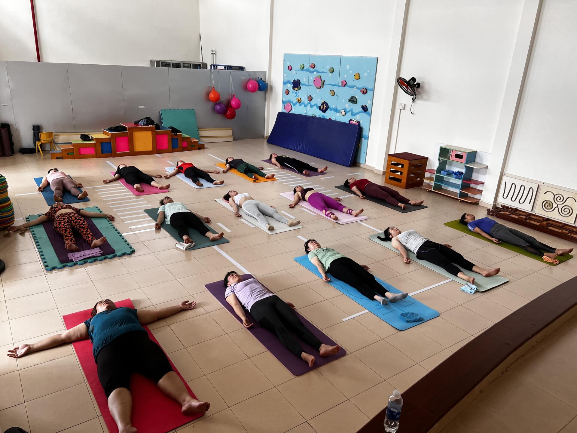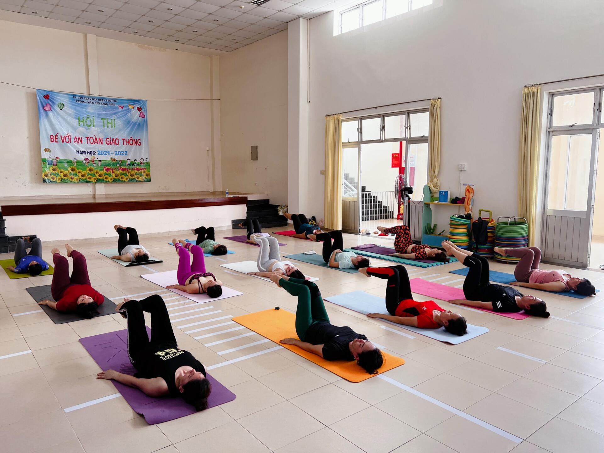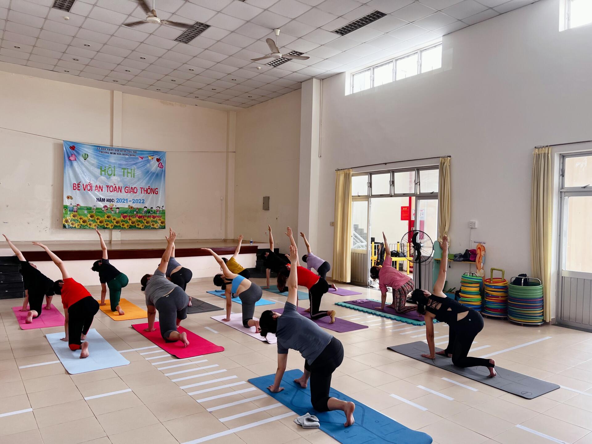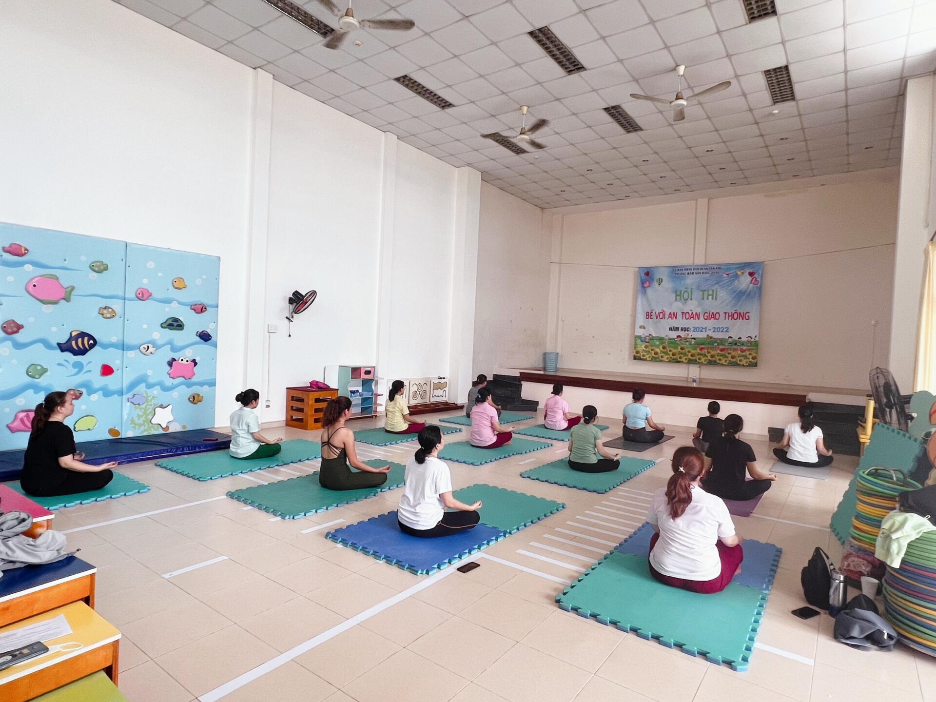 Hình ảnh tập luyện yoga của các cô giáo tại trường học: